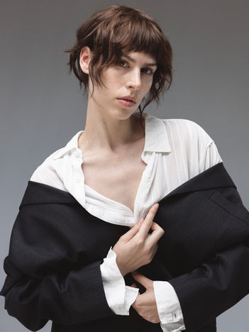 "I am a painter and a visual artist and my pictorial work is built around the mysteries of the human body. My natural curiosity for questions of health led me to draw on my own experience and that of those around me. Having an androgynous face, I enjoy playing with fashion and my image, embracing both my masculinity and femininity. I believe beauty emerges from our imperfections and I am proud to be part of a project like No Babes that pushes boundaries."